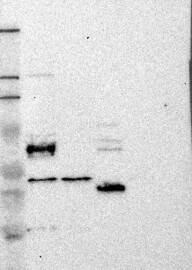 A Western blot analysis is performed on a panel of human tissues and cell lines to evaluate antibody specificity. For antibodies with unreliable result a revalidation using an over-expression lysate is performed.