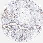 Antibody staining in the annotated cell types in the current human tissue is reported as not detected, low, medium, or high, based on conventional immunohistochemistry profiling in selected tissues. This score is based on the combination of the staining intensity and fraction of stained cells.