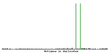At the top of the view, the position of the antigen (identified by the corresponding HPA identifier) is shown as a green bar. A yellow triangle on the bar indicates a <100% sequence identity to the protein target.