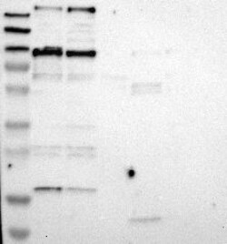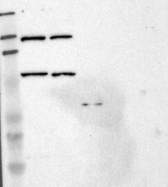 A Western blot analysis is performed on a panel of human tissues and cell lines to evaluate antibody specificity. For antibodies with unreliable result a revalidation using an over-expression lysate is performed.