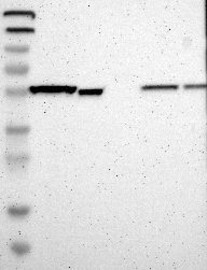 A Western blot analysis is performed on a panel of human tissues and cell lines to evaluate antibody specificity. For antibodies with unreliable result a revalidation using an over-expression lysate is performed.