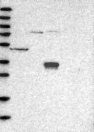 A Western blot analysis is performed on a panel of human tissues and cell lines to evaluate antibody specificity. For antibodies with unreliable result a revalidation using an over-expression lysate is performed.