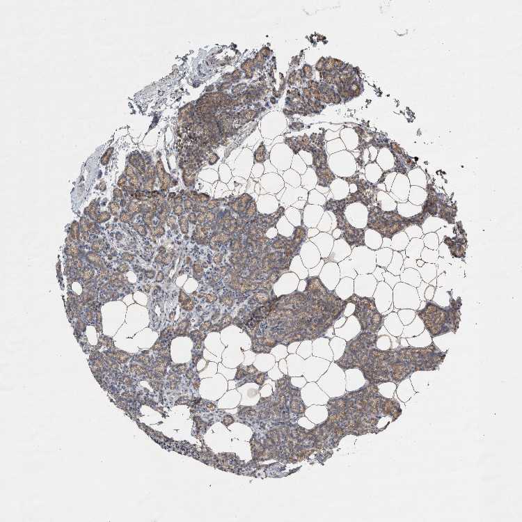 Antibody staining in the annotated cell types in the current human tissue is reported as not detected, low, medium, or high, based on conventional immunohistochemistry profiling in selected tissues. This score is based on the combination of the staining intensity and fraction of stained cells.