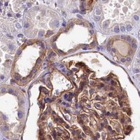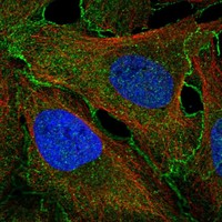 Enhanced validation is performed using either siRNA knockdown, tagged GFP cell lines or independent antibodies. For the siRNA validation the decrease in antibody-based staining intensity upon target protein downregulation is evaluated. For the GFP validation the signal overlap between the antibody staining and the GFP-tagged protein is evaluated. For the independent antibodies validation the evaluation is based on comparison of the staining of two (or more) independent antibodies directed towards independent epitopes on the protein.