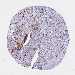 Antibody staining in the annotated cell types in the current human tissue is reported as not detected, low, medium, or high, based on conventional immunohistochemistry profiling in selected tissues. This score is based on the combination of the staining intensity and fraction of stained cells.