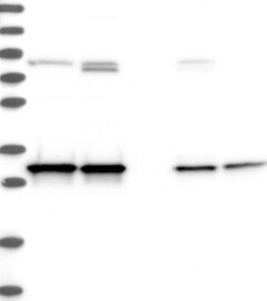 A Western blot analysis is performed on a panel of human tissues and cell lines to evaluate antibody specificity. For antibodies with unreliable result a revalidation using an over-expression lysate is performed.