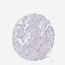 Antibody staining in the annotated cell types in the current human tissue is reported as not detected, low, medium, or high, based on conventional immunohistochemistry profiling in selected tissues. This score is based on the combination of the staining intensity and fraction of stained cells.