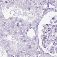 Immunofluorescent staining of human cell line Sperm shows localization to mid piece and principal piece.