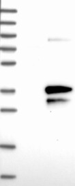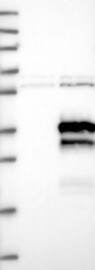 A Western blot analysis is performed on a panel of human tissues and cell lines to evaluate antibody specificity. For antibodies with unreliable result a revalidation using an over-expression lysate is performed.