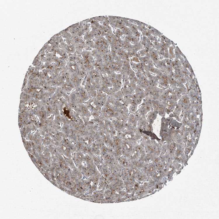 Antibody staining in the annotated cell types in the current human tissue is reported as not detected, low, medium, or high, based on conventional immunohistochemistry profiling in selected tissues. This score is based on the combination of the staining intensity and fraction of stained cells.