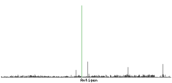 At the top of the view, the position of the antigen (identified by the corresponding HPA identifier) is shown as a green bar. A yellow triangle on the bar indicates a <100% sequence identity to the protein target.