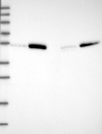A Western blot analysis is performed on a panel of human tissues and cell lines to evaluate antibody specificity. For antibodies with unreliable result a revalidation using an over-expression lysate is performed.