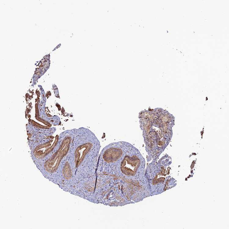 Antibody staining in the annotated cell types in the current human tissue is reported as not detected, low, medium, or high, based on conventional immunohistochemistry profiling in selected tissues. This score is based on the combination of the staining intensity and fraction of stained cells.