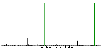 At the top of the view, the position of the antigen (identified by the corresponding HPA identifier) is shown as a green bar. A yellow triangle on the bar indicates a <100% sequence identity to the protein target.
