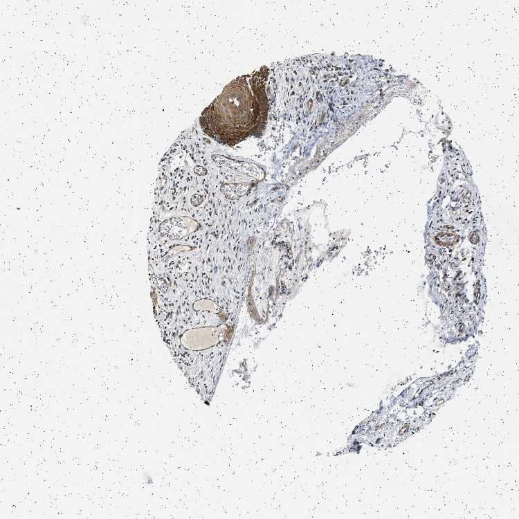 Antibody staining in the annotated cell types in the current human tissue is reported as not detected, low, medium, or high, based on conventional immunohistochemistry profiling in selected tissues. This score is based on the combination of the staining intensity and fraction of stained cells.