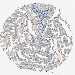 Antibody staining in the annotated cell types in the current human tissue is reported as not detected, low, medium, or high, based on conventional immunohistochemistry profiling in selected tissues. This score is based on the combination of the staining intensity and fraction of stained cells.