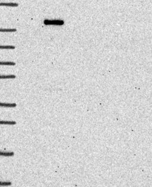 A Western blot analysis is performed on a panel of human tissues and cell lines to evaluate antibody specificity. For antibodies with unreliable result a revalidation using an over-expression lysate is performed.