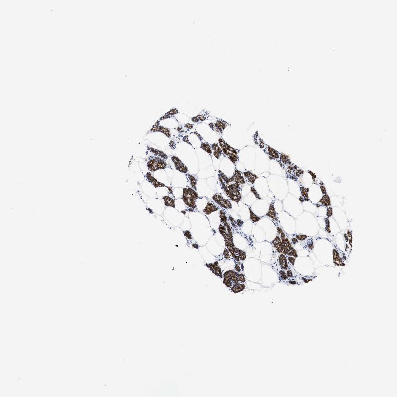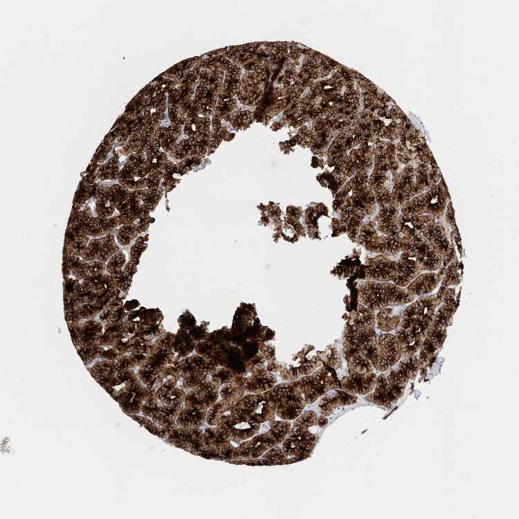 Antibody staining in the annotated cell types in the current human tissue is reported as not detected, low, medium, or high, based on conventional immunohistochemistry profiling in selected tissues. This score is based on the combination of the staining intensity and fraction of stained cells.