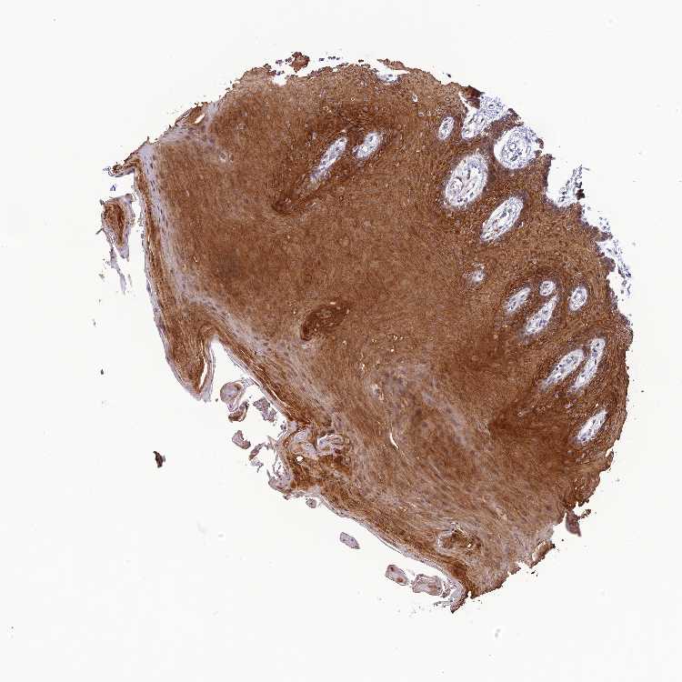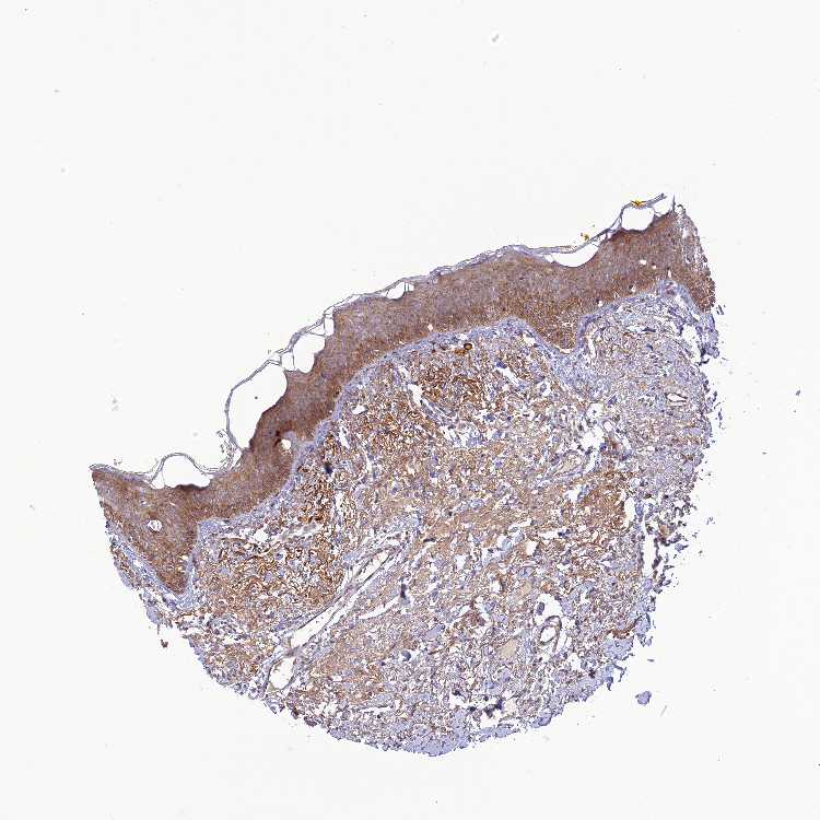 Antibody staining in the annotated cell types in the current human tissue is reported as not detected, low, medium, or high, based on conventional immunohistochemistry profiling in selected tissues. This score is based on the combination of the staining intensity and fraction of stained cells.