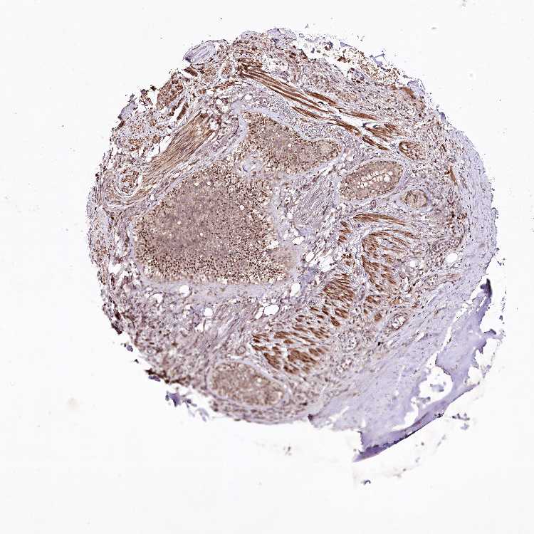 Antibody staining in the annotated cell types in the current human tissue is reported as not detected, low, medium, or high, based on conventional immunohistochemistry profiling in selected tissues. This score is based on the combination of the staining intensity and fraction of stained cells.