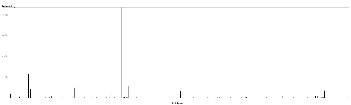 The curve in blue displays the predicted antigenicity i.e. the tendency for different regions of the protein to generate an immune response, with peak regions being predicted to be more antigenic.The curve shows average values based on a sliding window approach using an in-house propensity scale. (read more).
