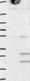 A Western blot analysis is performed on a panel of human tissues and cell lines to evaluate antibody specificity. For antibodies with unreliable result a revalidation using an over-expression lysate is performed.