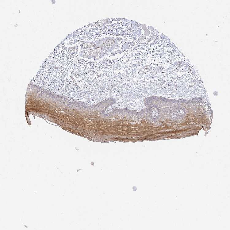 Antibody staining in the annotated cell types in the current human tissue is reported as not detected, low, medium, or high, based on conventional immunohistochemistry profiling in selected tissues. This score is based on the combination of the staining intensity and fraction of stained cells.