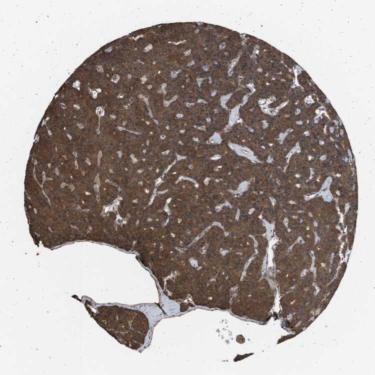 Antibody staining in the annotated cell types in the current human tissue is reported as not detected, low, medium, or high, based on conventional immunohistochemistry profiling in selected tissues. This score is based on the combination of the staining intensity and fraction of stained cells.