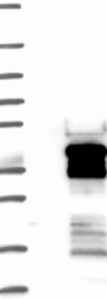 A Western blot analysis is performed on a panel of human tissues and cell lines to evaluate antibody specificity. For antibodies with unreliable result a revalidation using an over-expression lysate is performed.