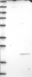 A Western blot analysis is performed on a panel of human tissues and cell lines to evaluate antibody specificity. For antibodies with unreliable result a revalidation using an over-expression lysate is performed.