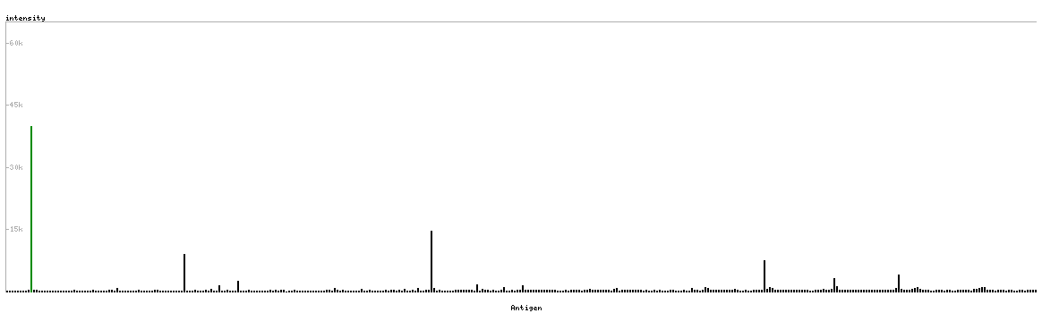 The curve in blue displays the predicted antigenicity i.e. the tendency for different regions of the protein to generate an immune response, with peak regions being predicted to be more antigenic.The curve shows average values based on a sliding window approach using an in-house propensity scale. (read more).
