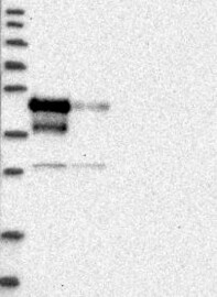 A Western blot analysis is performed on a panel of human tissues and cell lines to evaluate antibody specificity. For antibodies with unreliable result a revalidation using an over-expression lysate is performed.