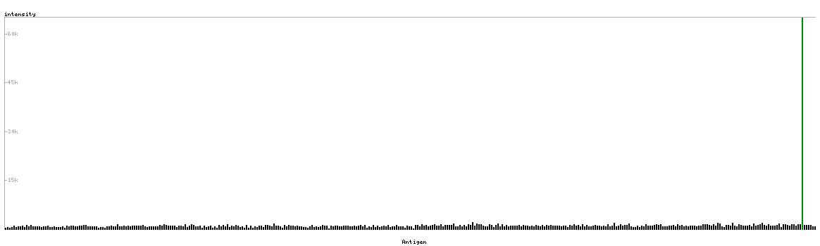 The curve in blue displays the predicted antigenicity i.e. the tendency for different regions of the protein to generate an immune response, with peak regions being predicted to be more antigenic.The curve shows average values based on a sliding window approach using an in-house propensity scale. (read more).