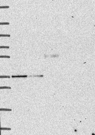 A Western blot analysis is performed on a panel of human tissues and cell lines to evaluate antibody specificity. For antibodies with unreliable result a revalidation using an over-expression lysate is performed.