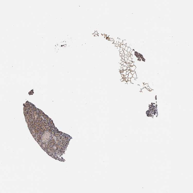 Antibody staining in the annotated cell types in the current human tissue is reported as not detected, low, medium, or high, based on conventional immunohistochemistry profiling in selected tissues. This score is based on the combination of the staining intensity and fraction of stained cells.