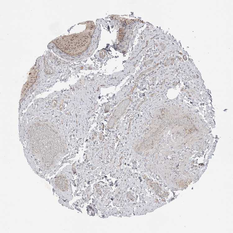 Antibody staining in the annotated cell types in the current human tissue is reported as not detected, low, medium, or high, based on conventional immunohistochemistry profiling in selected tissues. This score is based on the combination of the staining intensity and fraction of stained cells.