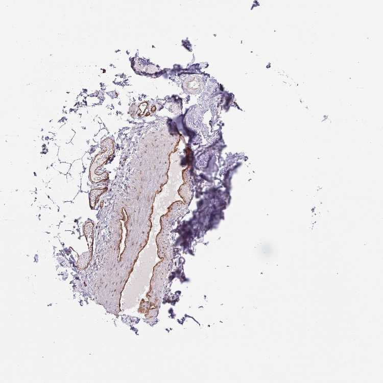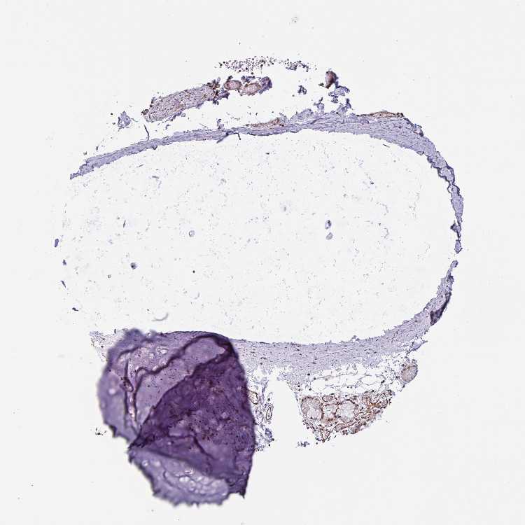Antibody staining in the annotated cell types in the current human tissue is reported as not detected, low, medium, or high, based on conventional immunohistochemistry profiling in selected tissues. This score is based on the combination of the staining intensity and fraction of stained cells.