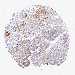 Antibody staining in the annotated cell types in the current human tissue is reported as not detected, low, medium, or high, based on conventional immunohistochemistry profiling in selected tissues. This score is based on the combination of the staining intensity and fraction of stained cells.