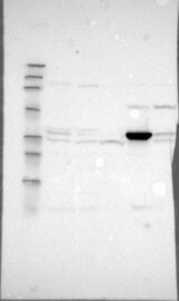 A Western blot analysis is performed on a panel of human tissues and cell lines to evaluate antibody specificity. For antibodies with unreliable result a revalidation using an over-expression lysate is performed.