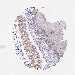 The primary data page shows the detailed antibody staining in 76 different cell types for each analyzed antibody. In addition, for each cell type, a knowledge-based annotated protein expression score based on all analyzed antibodies is displayed furthest to the right. The images and annotations can be accessed by clicking on the tissue name or score bar. More information can be found in Assays & Annotation.