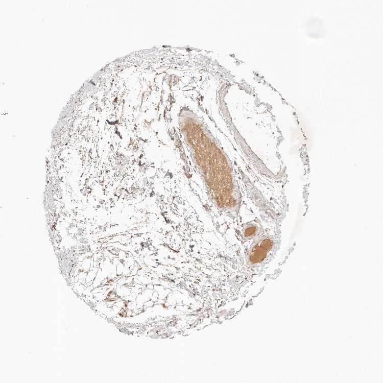 Antibody staining in the annotated cell types in the current human tissue is reported as not detected, low, medium, or high, based on conventional immunohistochemistry profiling in selected tissues. This score is based on the combination of the staining intensity and fraction of stained cells.