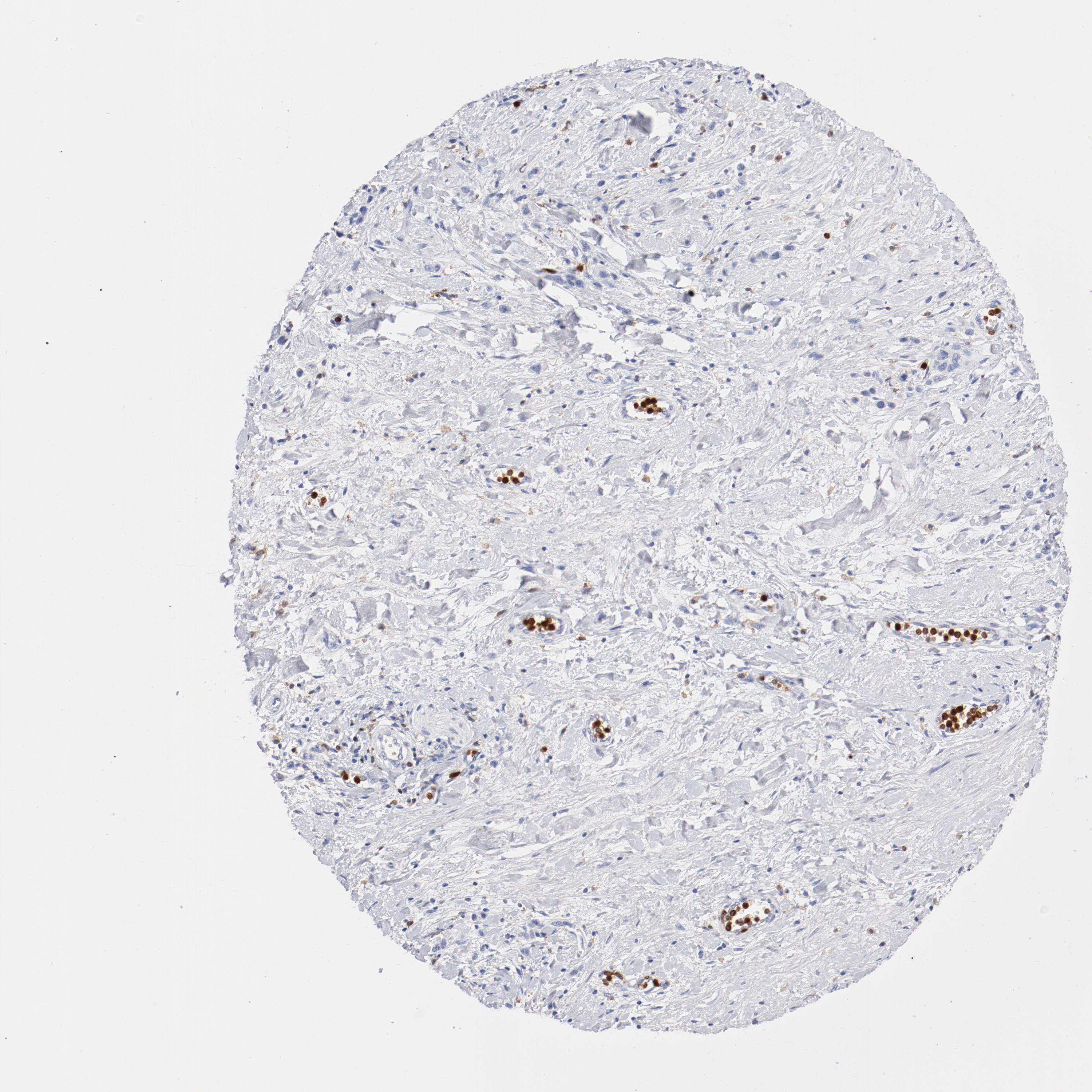 Antibody staining in the annotated cell types in the current human tissue is reported as not detected, low, medium, or high, based on conventional immunohistochemistry profiling in selected tissues. This score is based on the combination of the staining intensity and fraction of stained cells.