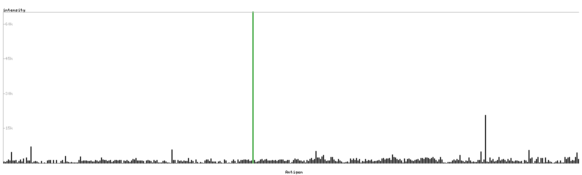 The curve in blue displays the predicted antigenicity i.e. the tendency for different regions of the protein to generate an immune response, with peak regions being predicted to be more antigenic.The curve shows average values based on a sliding window approach using an in-house propensity scale. (read more).