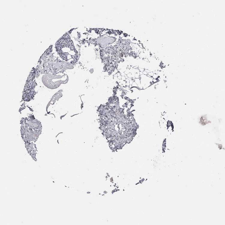 Antibody staining in the annotated cell types in the current human tissue is reported as not detected, low, medium, or high, based on conventional immunohistochemistry profiling in selected tissues. This score is based on the combination of the staining intensity and fraction of stained cells.
