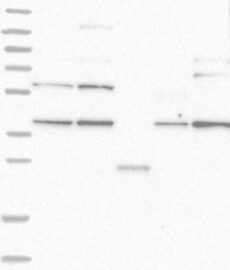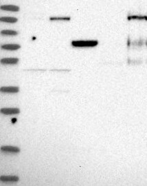 A Western blot analysis is performed on a panel of human tissues and cell lines to evaluate antibody specificity. For antibodies with unreliable result a revalidation using an over-expression lysate is performed.