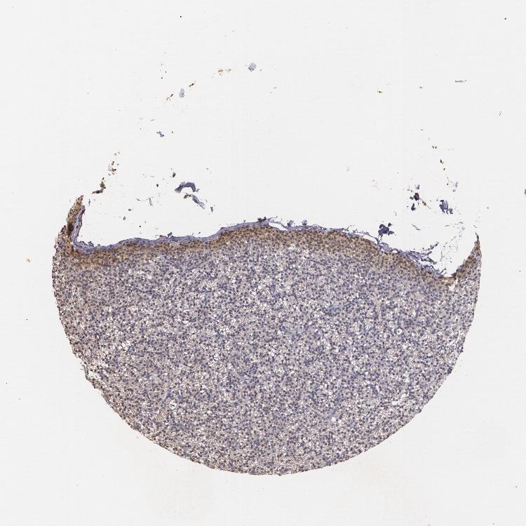 Antibody staining in the annotated cell types in the current human tissue is reported as not detected, low, medium, or high, based on conventional immunohistochemistry profiling in selected tissues. This score is based on the combination of the staining intensity and fraction of stained cells.