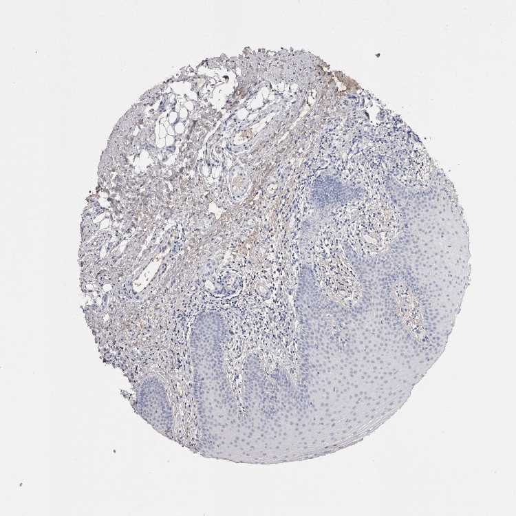 Antibody staining in the annotated cell types in the current human tissue is reported as not detected, low, medium, or high, based on conventional immunohistochemistry profiling in selected tissues. This score is based on the combination of the staining intensity and fraction of stained cells.