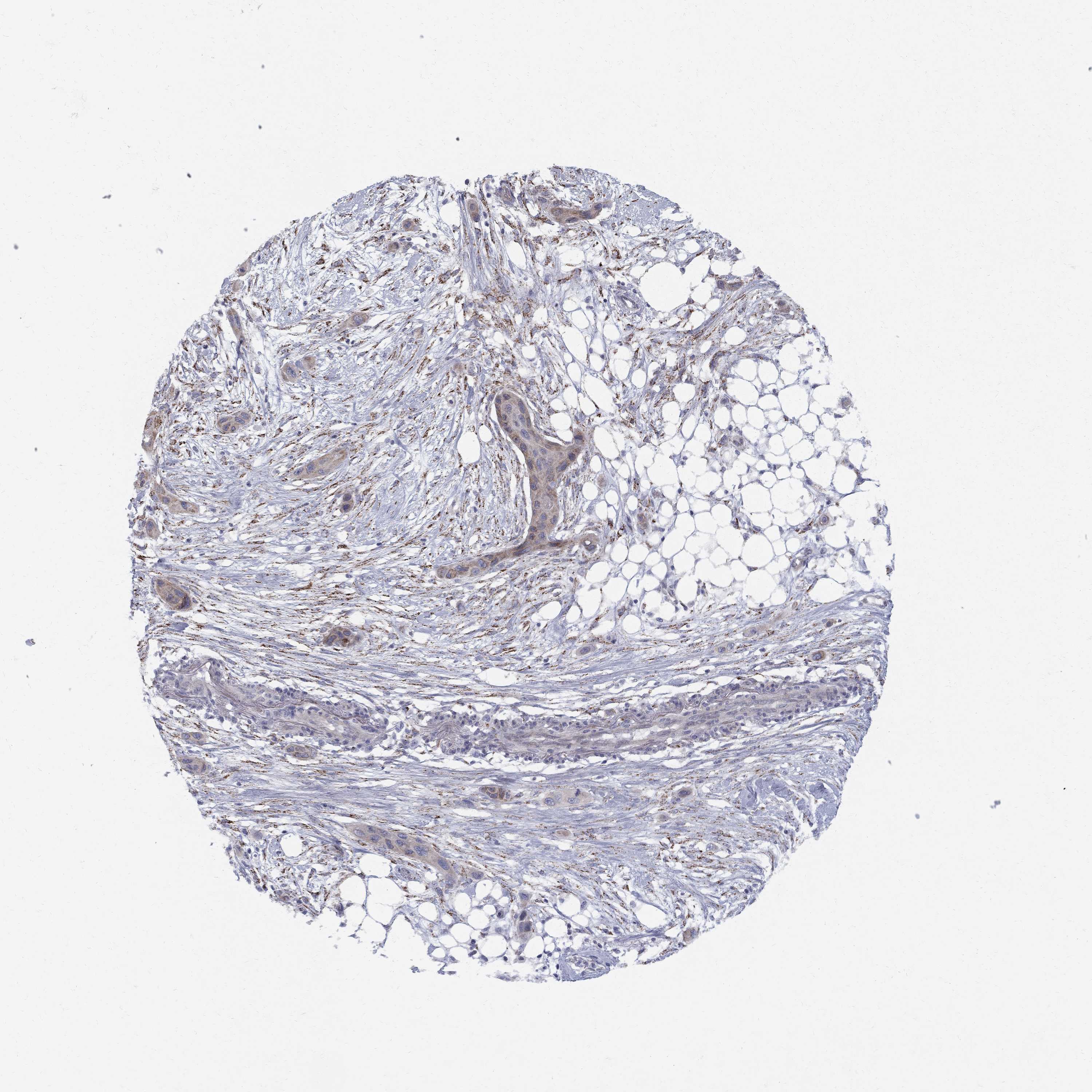 Antibody staining in the annotated cell types in the current human tissue is reported as not detected, low, medium, or high, based on conventional immunohistochemistry profiling in selected tissues. This score is based on the combination of the staining intensity and fraction of stained cells.