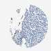 Antibody staining in the annotated cell types in the current human tissue is reported as not detected, low, medium, or high, based on conventional immunohistochemistry profiling in selected tissues. This score is based on the combination of the staining intensity and fraction of stained cells.