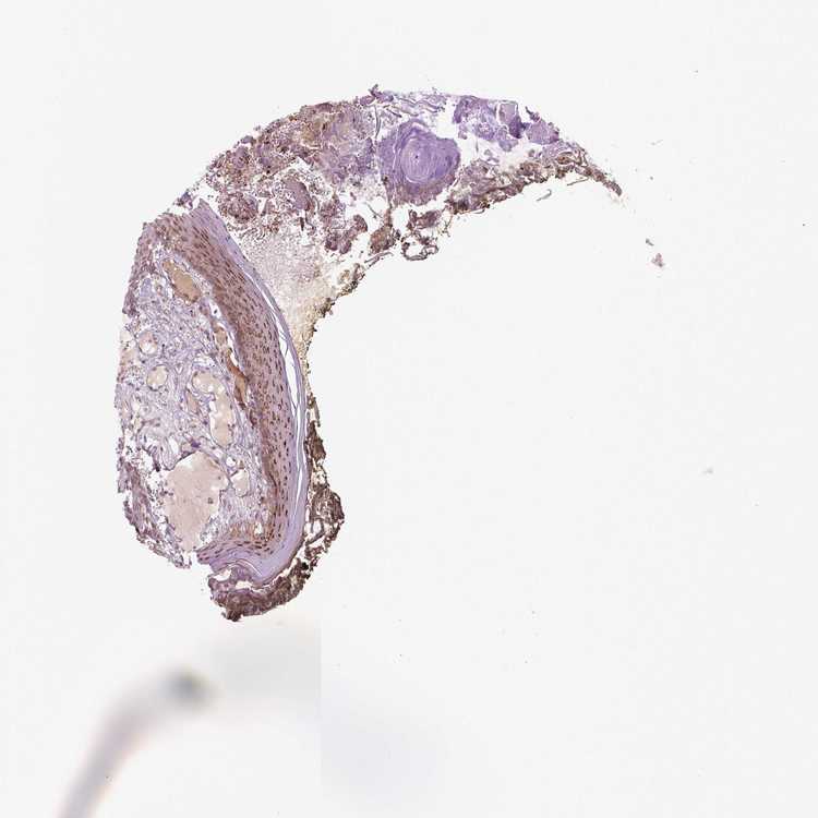 Antibody staining in the annotated cell types in the current human tissue is reported as not detected, low, medium, or high, based on conventional immunohistochemistry profiling in selected tissues. This score is based on the combination of the staining intensity and fraction of stained cells.